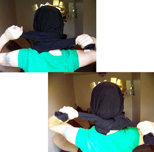 solo necesita la camisaeso es todoPaso 1: ahora debe tirar su camiseta en le narizPaso 2: ponerlo sobre le cabeza de la parte posteriorUsando ambas manosPaso 3:luego unir los extremos sueltosy listo