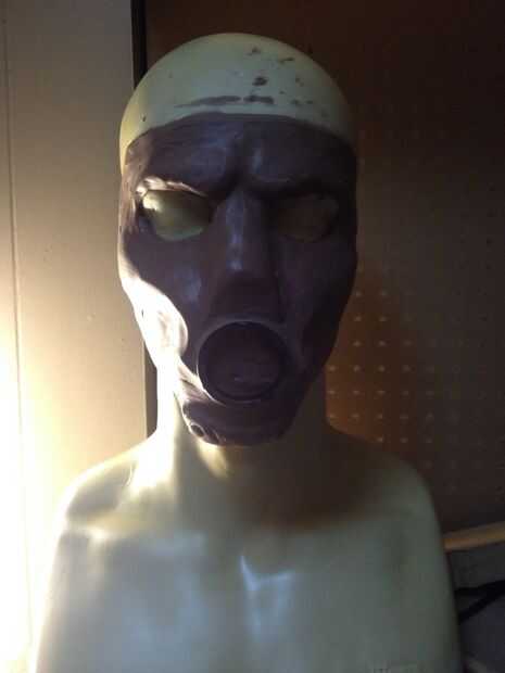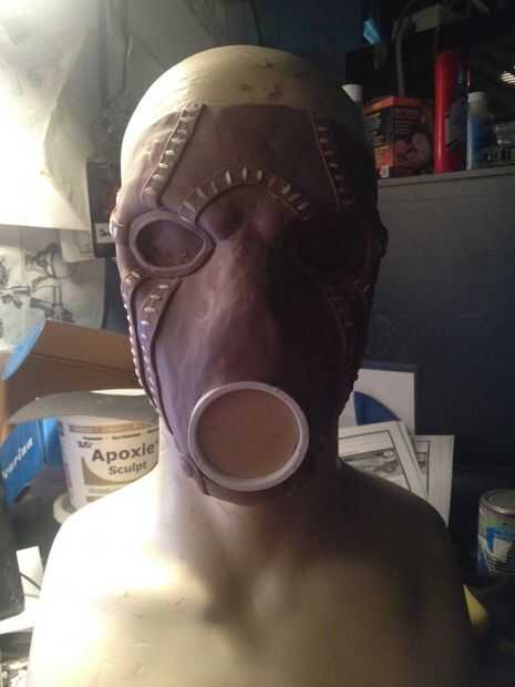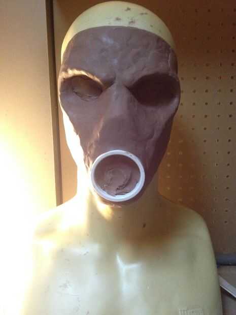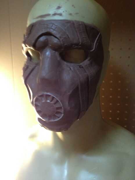 Con todas las referencias que se reunieron, sentí que estaba listo para esculpir mi máscara. Esta es la parte más difícil. En este punto, había esculpido 3 versiones hasta que llegué a ver muy cerca de la máscara en juego. las cuatro últimas fotos son de la escultura final. Para la costura de la mascarilla me originalmente sólo había tallada líneas en él pero luego más tarde quería que las marcas de puntada para ser levantado, así que usé arroz y le dio un gran efecto. Para el ventilador en la boca utiliza un tubo de PVC de 3/4, corte hacia abajo y empujó en la arcilla. Luego añadí un pedazo de Mdf en el centro para sujetar las aspas del ventilador en. Las aspas del ventilador eran sólo piezas de cartón recortado y pegado en su lugar. la parte central poco es solo un pequeño tubo de pvc con arcilla en la parte superior. Ahora en la moldura.
