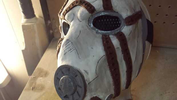 Esta es la etapa de remate donde añadir la malla, las correas y espuma. vamos a empezar con la malla. La malla es muy sencilla hacer todo lo que necesitas hacer es conseguir tela spandex y cortar hacia fuera suficiente para cubrir los ojos. Luego use la pistola de pegamento caliente y pegamento de la malla en la parte posterior de la máscara para cubrir los agujeros del ojo. Para las correas puedes correas elásticas en cualquier tienda de tela. ahora miden aproximadamente la longitud de un lado de la máscara a otro con la máscara en la cabeza y añadir un 2 cm que esto hará mejor cabe en la cabeza. Ahora pegue en el lugar y la medida de banda superior a cuánto de la correa que usted va a necesitar conseguir que se conecte a la otra correa y añadir 2 pulgadas para que usted puede lazo la correa alrededor de la una entonces pruébalo. y por último la espuma de corte y relleno. Para el relleno puede utilizar cualquier tipo de espuma como las cosas en un casco de moto o tapetes de espuma de 3mm. Para esto simplemente cortar unos rectángulos luego colocarlos en los lugares que necesiten relleno. entonces tu espuma de artesanía y cortar un rectángulo de largo fuera de él que ir alrededor del borde de la máscara y pegamento caliente por y añadir poco de pintura gris. Volver a utilizar tu sharpie a la esquematización y luego termines. Ahora mismo tienes una máscara de psycho de borderlands terminado. Gracias por echar un vistazo a mi generación.