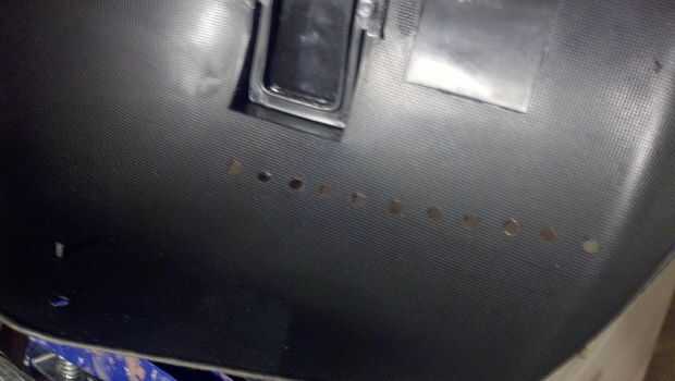 Nota: unidades del kit (LEDs) vienen en threes. Taladre los agujeros en consecuencia. (A trazado una plantilla sobre un trozo de cartón de desecho que me ayude a medida).