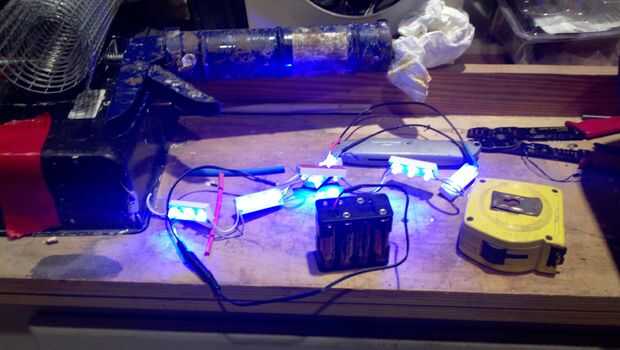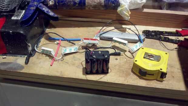 Nota: unidades del kit (LEDs) vienen en threes. Taladre los agujeros en consecuencia. (A trazado una plantilla sobre un trozo de cartón de desecho que me ayude a medida).