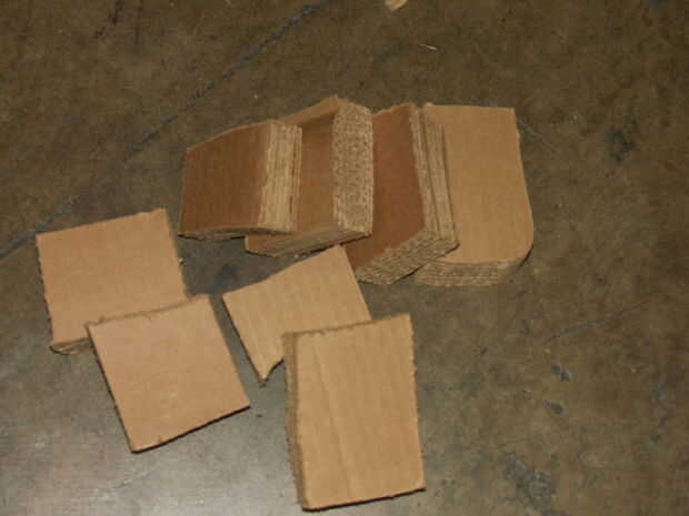 Este es el último paso para cortar el cartón, lo que usted necesita para cortar son los espaciadores. Los espaciadores son bloques de cartulina de una pulgada o dos de espesor. Para lograr el espesor repetir el procedimiento formulario tres: para pegar uso pegamento de su elmer blanco pone un montón de pegamento entre cada capa de cartón poner algo de peso encima y esperar 24 horas completas.
