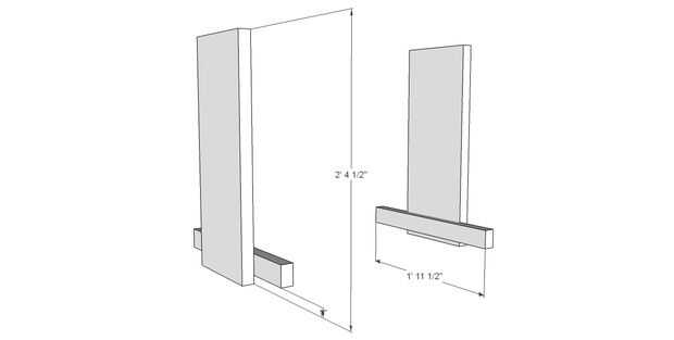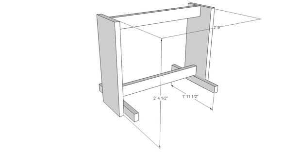Con 2 piezas 2 x 12 tablero 28 1/2" de largo, 2 piezas de 2 x 3 23 1/2" de largo y 2 piezas de 2 x 4 33" largo hacen pierna.