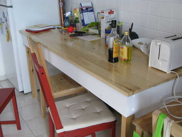 quiero una tabla. Debe ser una mesa de trabajo y también una múltiple uso mesa al aire libre. Pero para un hombre parado, mi primera opción es más barata - quiero hacer una mesa, más barato hacer una tabla.En la ferretería local, encontré siempre ven