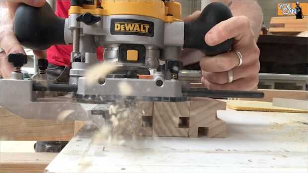 Usé una fresadora de inmersión con un poco de corte recto 12mm. Hice cada corte en 2 pasos. Utilizando una guía de borde y un bloque de tope en el extremo del corte pude hacer cada mortaja lo mismo. Forro las patas para arriba me dio una superficie más amplia para descansar el router en.