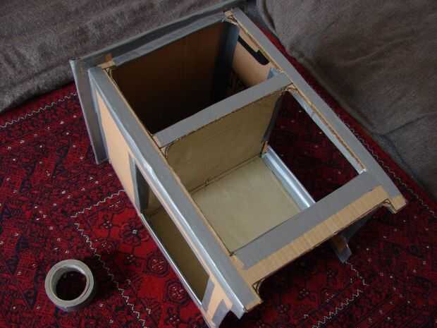 Marque y corte la fachada de un trozo de cartón. La fachada ayuda a estabilidad de la estructura y también hace que se vea más sólido de la parte delantera. Coloque en la parte delantera con cinta para tubos.
