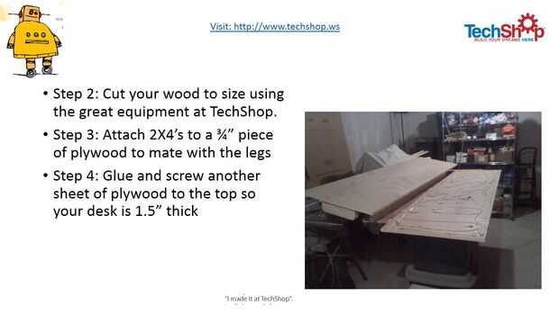 este video muestra cómo hacer un escritorio.  La hice en TechShop.  Visita www.techshop.ws