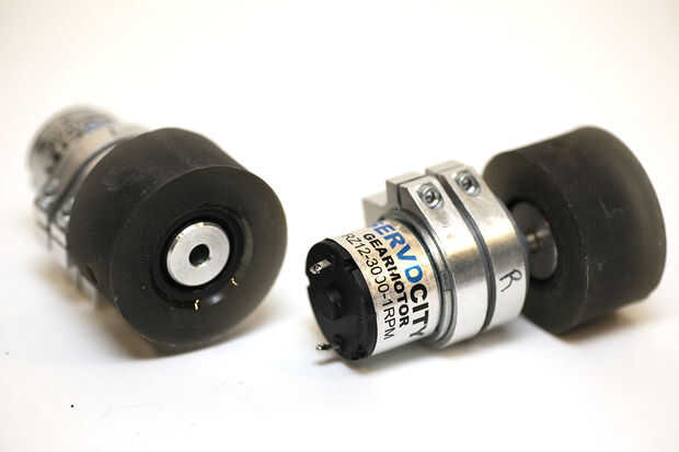 - 2 ruedas para acoplar a motor (las ruedas fueron hechas a la orden, pero deberían funcionar cosas aquí: https://www.servocity.com/html/wheels___tires.html )
