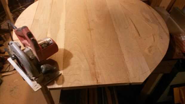 54" tablero de la mesa redonda no se puede hacer en una sierra de cinta, incluso con 2 personas. Imposible no meterse hasta el corte.