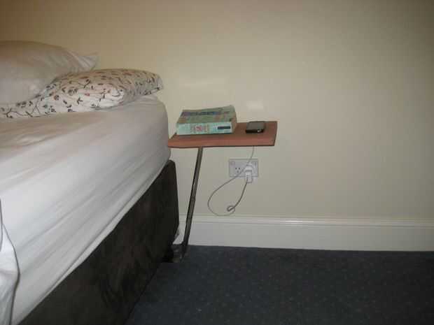 Hacer una mesa de noche/soporte simple con bajo costo mediante el uso de palets desechados.Me gusta paletas porque usted puede conseguirlos gratis y cuando son lijadas, revela un bonito diseño de madera. Poco las grietas y agujeros hace les mirada rú