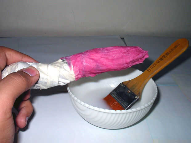 Tomar su cuerpo de mierda y luego difundir el material de la cola mediante el uso de la brocha, luego tome el papel de seda o papel higiénico y extendido en el cuerpo de mierda, capa por capa y luego presiónela utilizando sus manos para que sea nivel.