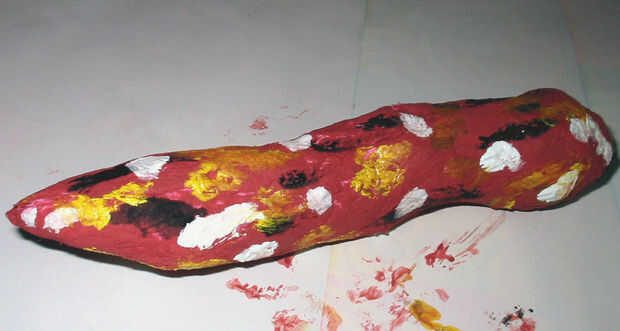 Que la mierda seca durante la noche, después de secar la mierda ahora es el momento para pintarlo. Ahora usar la pintura marrón y la pintura toda la mierda con ella primero utiliza pequeños puntos de pintura negra, entonces algunos amarillo y blanco parches de pintura, luego toman otro cepillo y sumergirla en agua y difunda en la mierda para mezclar los colores de mierda y darle un buen color natural.