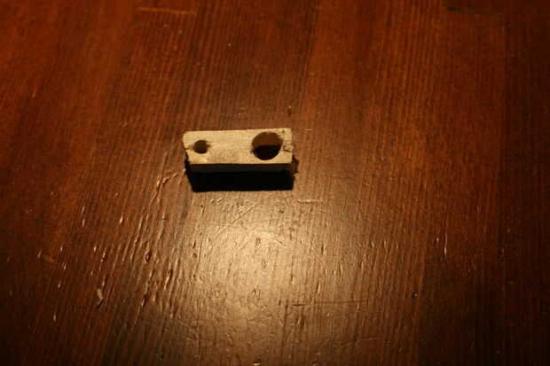 Cortar un trozo de madera que mide 3 cm (1 pulgada). Perfore un agujero del mismo tamaño que ésos en los soportes (maby un poco más pequeño) y un grosor de un pincho. Empuja tu pincho dentro de la más pequeña del agujero y pégalo en el lugar. Poner ahora en los tres pinchos en el agujero más grande.