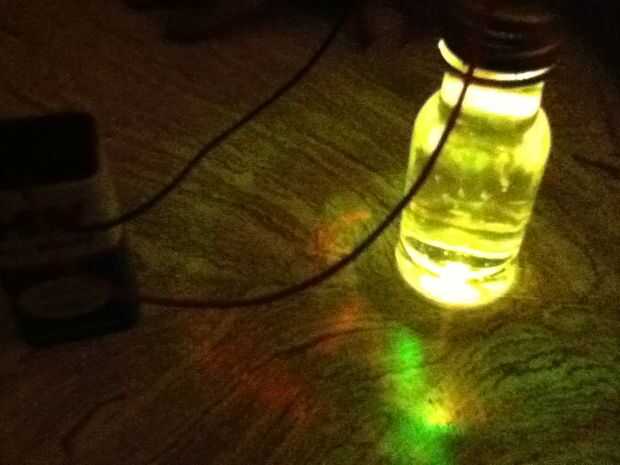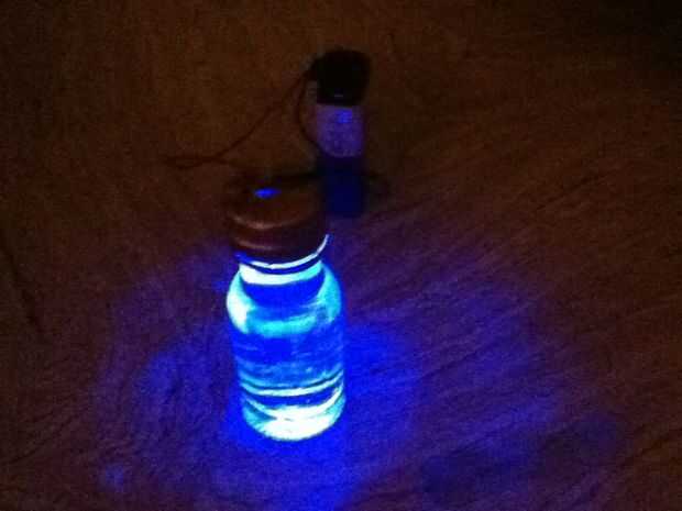 Conectar el LED a la batería. Y eso es todo. No he hecho una vivienda perfecta para las baterías y la botella, porque depende de su imaginación y creatividad. Disfruta con esta lámpara de bolsillo portátil en cualquier lugar y en cualquier momento.