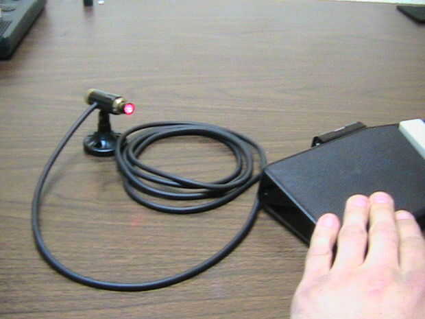 Cuando termine este láser puede ajustarse en una mesa detrás del jugador, un cable de corriente del láser a un interruptor de pie pétalo se va deprimido (con el pie) para encender el láser.