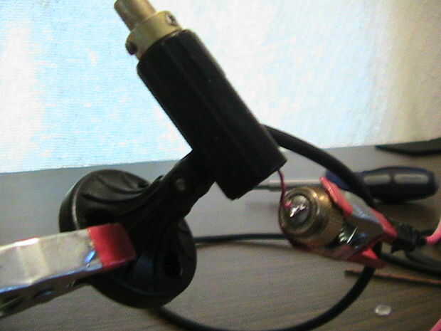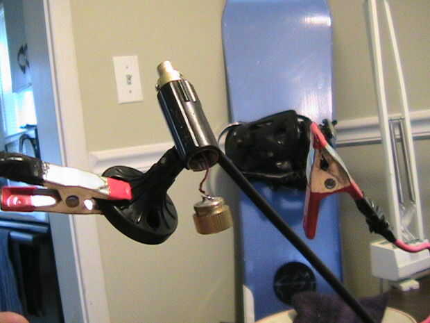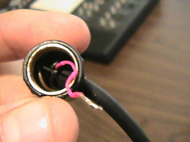 Luego se suelda el cable rojo en el interior del oro justo en el centro del casquillo. De la fábrica de esta tapa de oro tiene un gran toque de soldadura aquí y está diseñado en contacto con el lado positivo de la batería. Este lenguado grande de soldadura es que derretido y había conectado el cable rojo (positivo de la batería) a.
