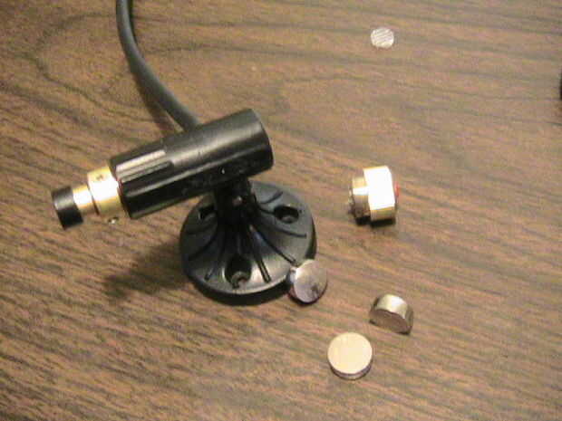 A continuación soldado el cable negro con mucho cuidado con la primavera bajando dentro del láser (esto no fue fácil porque todo está tan apretado, pero con un poco de paciencia se puede hacer. Este cable negro es el negativo del batería.
