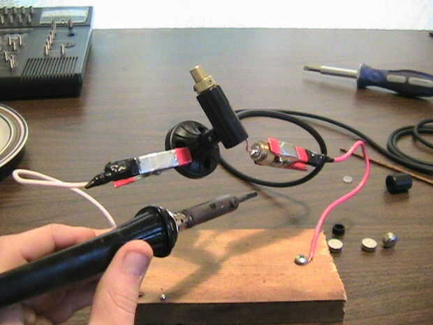 A continuación cuidadosamente para atornillar la tapa detrás, había atornillado en el hilo rojo también fue torciendo con él, y por esta razón el cable rojo debe quedar un poco largo como para darle longitud a la bobina para arriba y no gire la Junta de soldadura.