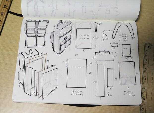 Una vez que tengas el diseño básico abajo dibujarlo en los diferentes Estados en perspectiva para revelar los componentes ocultados dentro de. ¿Qué es la apariencia como cuando la tapa está abierta? ¿Es un bolso de rodillo superior? ¿Hay bolsillos internos? Recuerde nuevamente que no tiene que ser perfecto, que esto es sólo para tu propio entendimiento. (Dibujaba páginas y páginas antes de que llegué mi diseño finalizado y aún hay cambios que haría!)