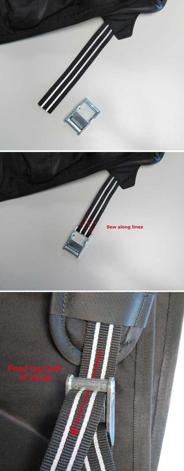 Este es el paso final. Fije los Ajustadores de cam de correa a la cinta de la correa.