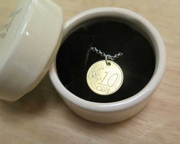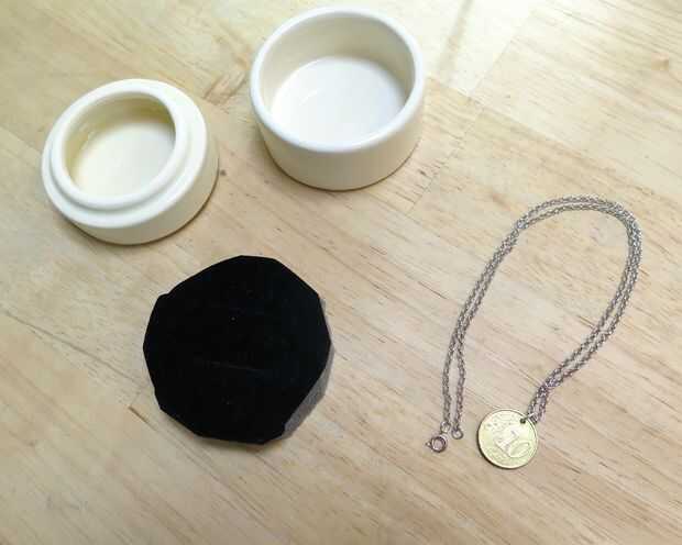 Resbaló el collar a través de dos ranuras y luego había pegado a la espuma en la caja de la cadena de exceso del collar debajo de la espuma. Es una manera fácil de mostrar este collar simple y hace el regalo todo que mucho más especial!