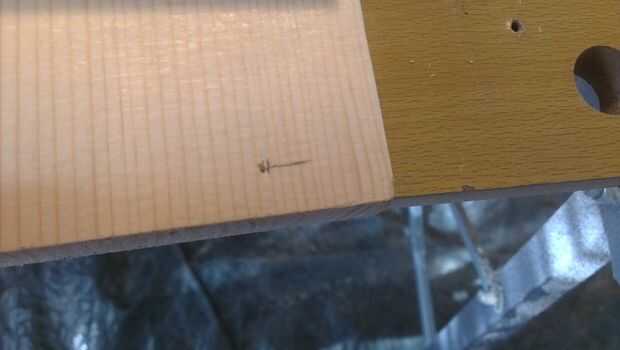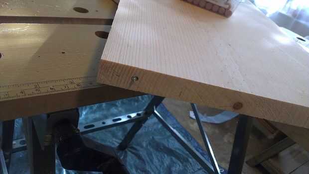 No tengo taladro centros así que cortar las cabezas de dos tornillos para dejar el hilo y punto, cubre la rosca con cinta de enmascarar para mi orificio piloto de 5 mm. El orificio piloto está perforado para que sólo la punta del tornillo sobresale y cuando alineado con la tabla correspondiente, pondrá dos marcas que puedo centro mis agujeros con. Esto garantiza que mis tacos siempre encajan y se alinean. Si se puede medir y taladro perfectamente con precisión, entonces esto no es obligatorio, pero es raramente perfecta así que esto proporciona un mejor escenario.