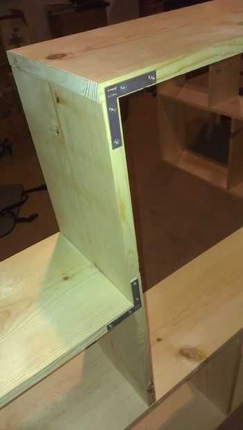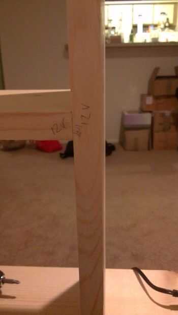 Con el corte de piezas, perforados y clavijas insertadas, hacer un ataque seco de todas las piezas para asegurarse de encaja en el orden correcto. Con el ajuste seco completo, dedique tiempo a la parte posterior de los tableros para ayudar en la Asamblea después de la etiqueta. Etiquetados los tableros verticales "V" y "H" para horizontal numeradas desde el piso hacia arriba y de izquierda a derecha. Esto le da a cada pieza una designación única. En la intersección de cada pieza, escribir la pieza que se conecta a los extremos para darle una posición específica y el orden. Colocar abrazaderas de las esquinas en las esquinas externas (es decir, las intersecciones más exteriores en el perímetro) en la parte posterior para evitar el tormento.