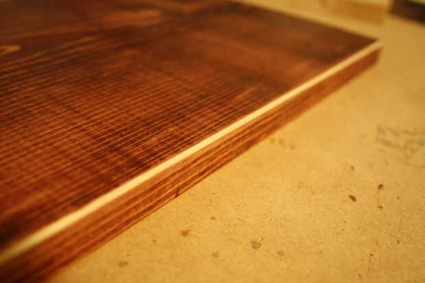 Con la mancha seca, chaflanado todos los bordes de los tableros con un cuchillo plano y utilidad dejar aproximadamente un 3/16"(2mm) el chaflán. Donde había intersecciones, dejé el borde cuadrado para lavar las piezas se unieron y continuaron el chaflán en el otro lado. Esta izquierda un mechero bonito color línea alrededor de todas las piezas que ayudó a dar más profundidad que una sombra de color.