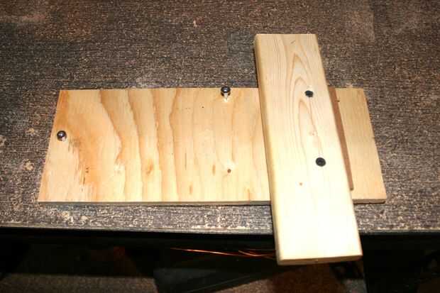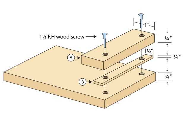 Usé madera de desecho para construir una plantilla simple. El bloque superior (A) debe extenderse más allá de su medio (B) bloque por 1/2", y usted necesita para asegurarse de que la altura de la madera que utilizamos en el centro (B) es ligeramente superior a la altura de la montaña.