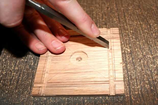 Poner la montaña en su plantilla. Vio a la misma profundidad de su cobre. No todos los 4 lados de cada montaña. Si el ancho de la Sierra es más pequeño que el cable, encontrar algo que puede poner en su plantilla como espaciador y tomar otro corte para ampliar el canal. Usé una astilla de madera.