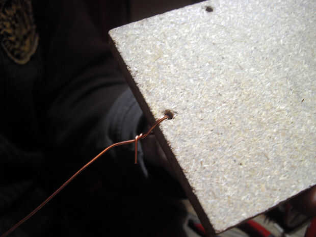 A continuación fije un extremo a algo bastante sólido (como un vicio, o una pieza de madera que puede contener)