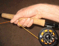 El pulgar, esto es el agarre más fácil enseñar a un viejo golfista como el pulgar y el índice se envuelven alrededor del lado del club, me refiero a la barra, como si con una plancha. Esto es probablemente un agarre más cómodo, pero, como el pulgar, puede añadir estrés en la muñeca. La línea puede ser considerada bajo el dedo del índice en este agarre así. Esto puede ser un útil agarre cuando se trata de una brisa de batalla o para lanzar una mosca grande sobre un río de buen tamaño.