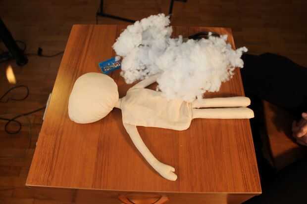 y a través del cuello para la estabilidad. Luego llene la cabeza y el cuerpo.