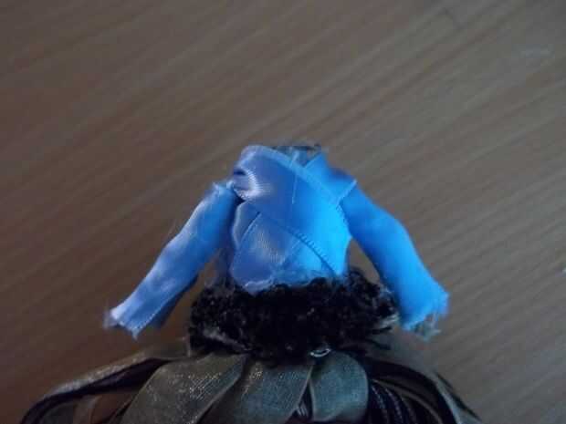 Utilice un trozo de tela o cinta para pegar un chal alrededor de la muñeca. También puede Agregar mangas pegando piezas para los brazos. En mi segunda muñeca hice una camiseta en lugar de un chal, porque estaba clara que me permitía ver sus piernas que coloqué el tubo de la zona del estómago y el pecho.