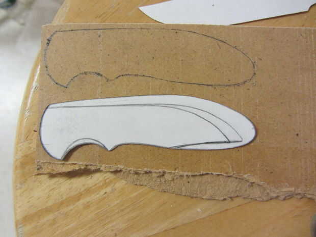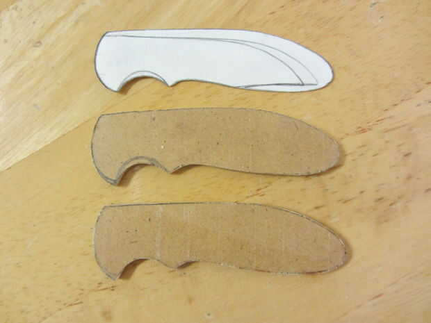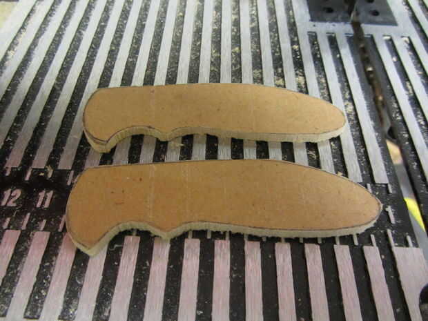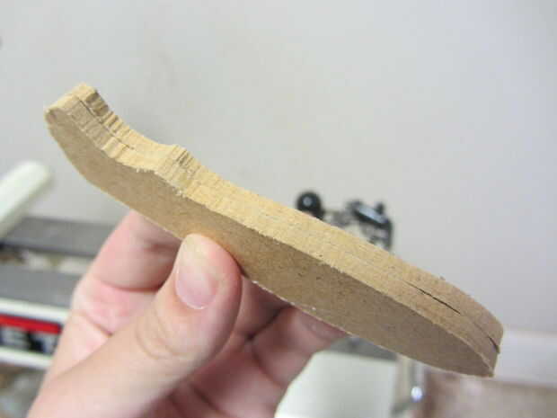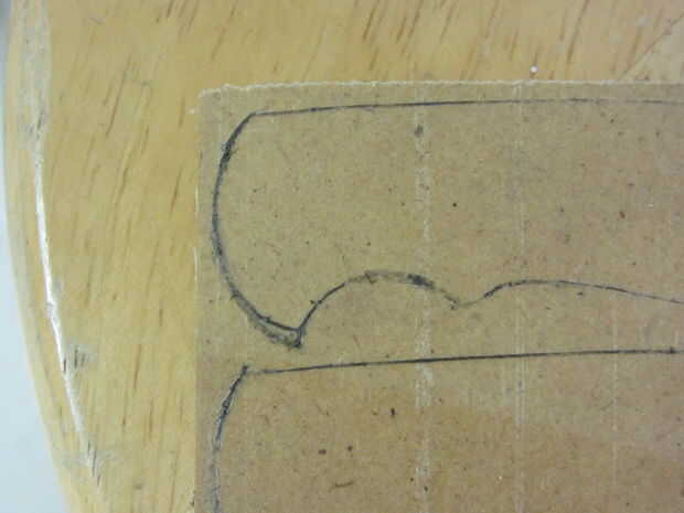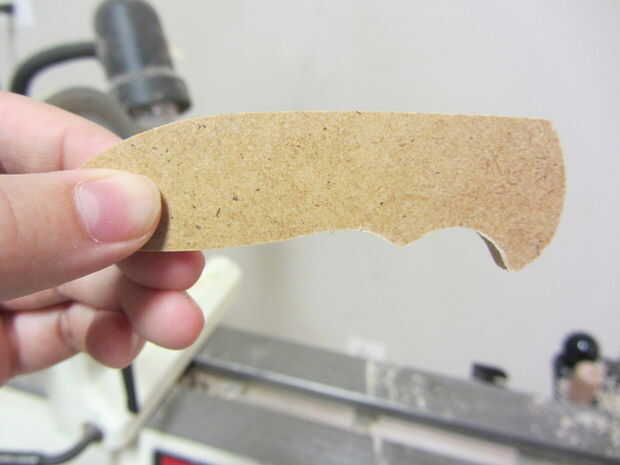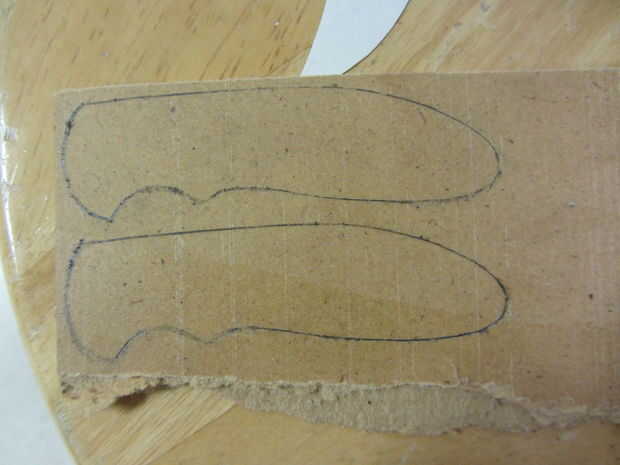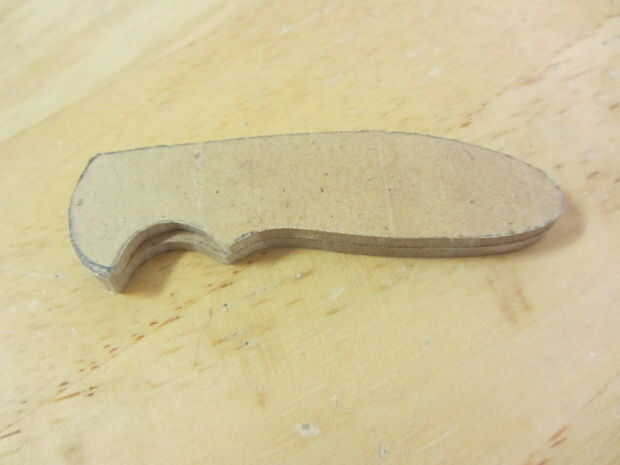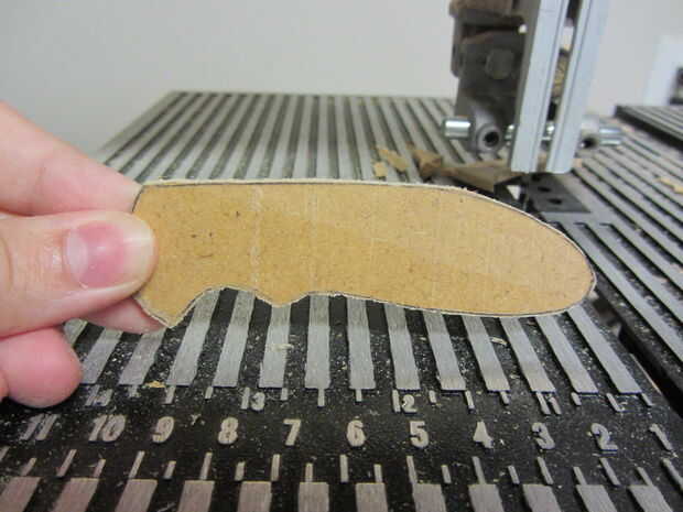Usé algunos 1/8" madera tenía por ahí, pero algo debería hacer (madera, acrílico, platino, unobtanium, etc.). Yo apenas trazado alrededor de la plantilla dos veces, cortar ambas piezas con una sierra de cinta (una sierra de marquetería o incluso una sierra haría simplemente como muy bien) y ligan mientras lija los bordes liso de agradables líneas nítidas.