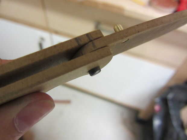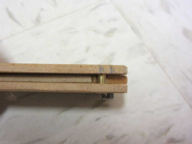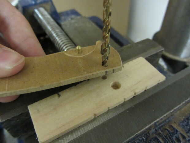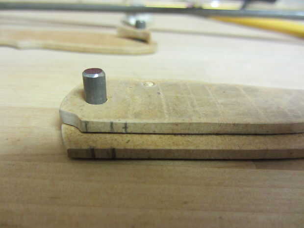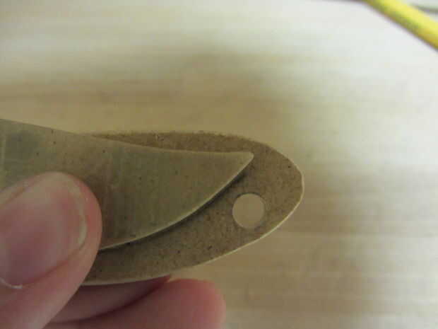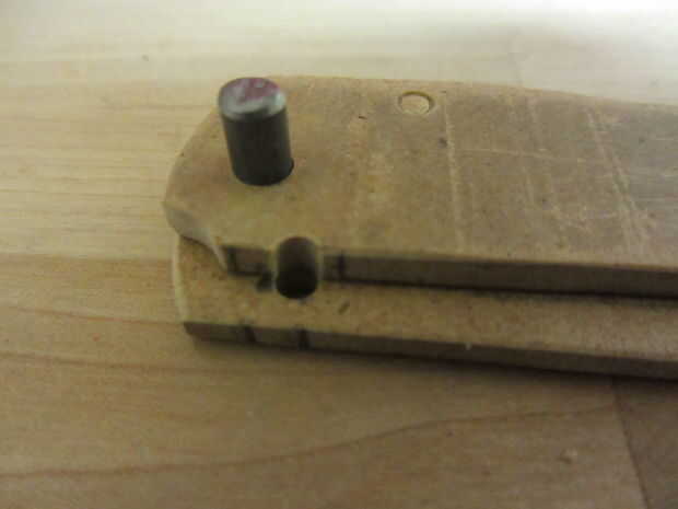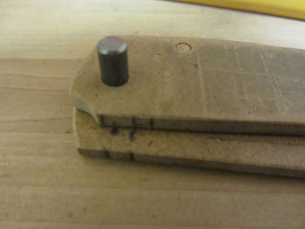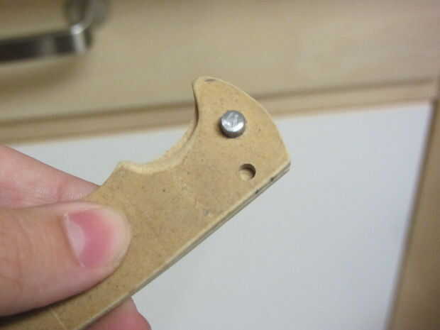 Ahora esto es un poco difícil de explicar, así que espero que las imágenes ayudarán. Desea que el perno de parada para descansar en un recorte semicircular en la hoja. Marque la parte inferior de la hoja (cuando colocado exactamente donde usted quiere estar en el final) y marca donde van los pines. Me chupo a explicar, así que por favor mire las fotos (y no dude en dejar comentarios si todavía no tiene sentido, no le culpo).