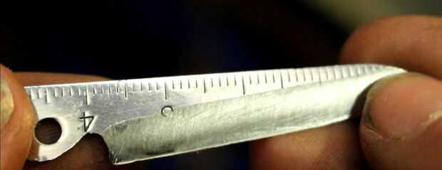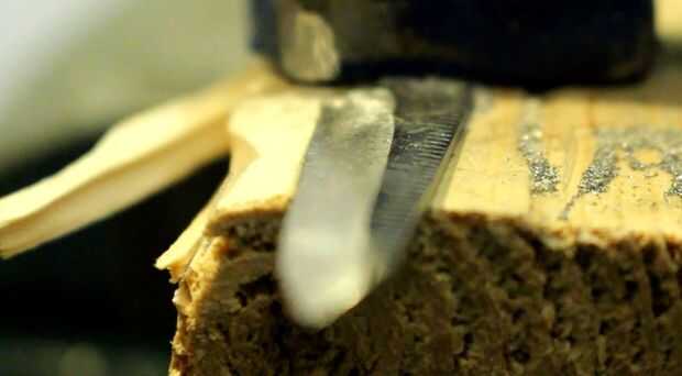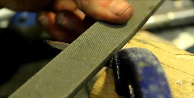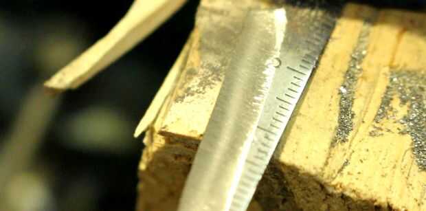 Una ventaja de la mano llenando el borde es que no tiene poco a ninguna posibilidad de recalentamiento del acero donde podría algo como una lijadora de banda. Decidí usar un cincel molido en esta hoja ya era el estilo de rutina ya en la hoja de la tijera en el momento. Esto también significó que la hoja tenía un filo estupendo.