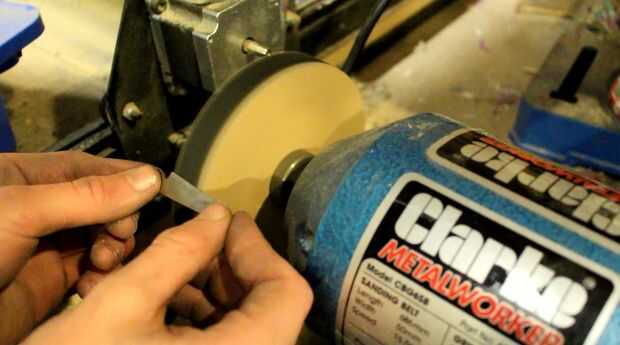 Luego fue tiempo para la cuchilla de corte en bisel. Otra vez hay cientos de maneras de hacer esto alta tecnología y caro a barato y alegre. Decidí ir con el último y había hecho el bisel todo con una lima de mano. Esto tomó bastante tiempo y no lo recomendaría para una hoja más grande, más gruesa o más dura y realmente hizo mi nuevo archivo un poco embotado. Después de llenar dio el borde lijar un poco para deshacerse de cualquier arañazos profundos y suavizar el borde. He usado mi MDF casero energía rueda vigorosamente que hice en otro tutorial para afilar la hoja a afiladísimo.