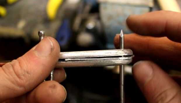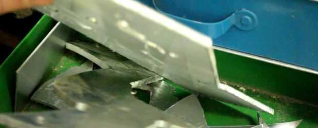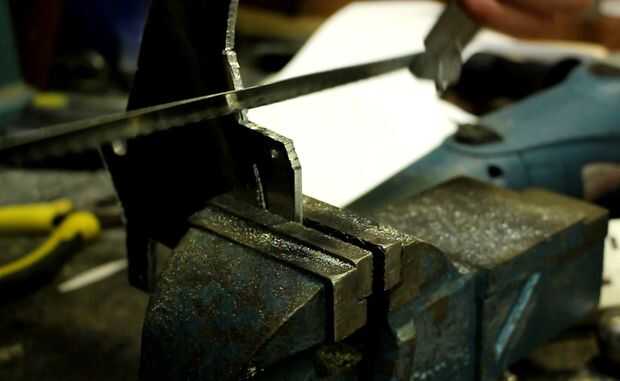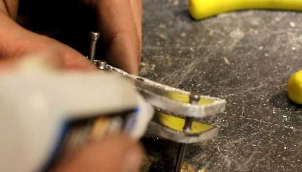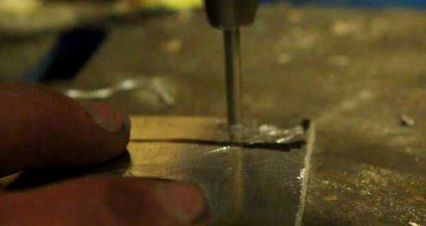 La manija se hace de la hoja de aluminio de chatarra que había sobrado de otro proyecto, esto quiere decir que el cuchillo entero fue hecho gratis de material de desecho - cuando llegan a hacer algo gratis de chatarra!