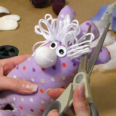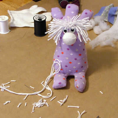 Empezar por enhebrar una aguja de hilo con su elección de hilo (unos 5 o 6 pies doblados). Si la tela del calcetín es fina, deberás tener más cuidado porque no se perdona más tarde si quiere sacar el hilo y comenzar de nuevo.