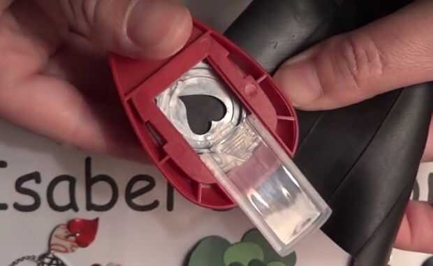 Utilizar un corazón en forma de punzón para cortar 12 corazones tubo de bicicleta interior y 2 corazones de pod de café.