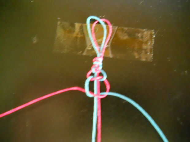 Paso #5: si empezaste en el lado izquierdo, tome la cuerda izquierda y cruzar detrás de las cuerdas del centro, y a través del derecho, sin embargo si empezaste en el lado derecho, sería tomar el cordón derecho, cruzar detrás de las cuerdas del centro y hasta a través de la cuerda izquierda. Que ahora tienes la segunda parte de su conocido como cuadrado de macrame nudo. Estire los cordones y tienes el nudo de macrame terminado.
