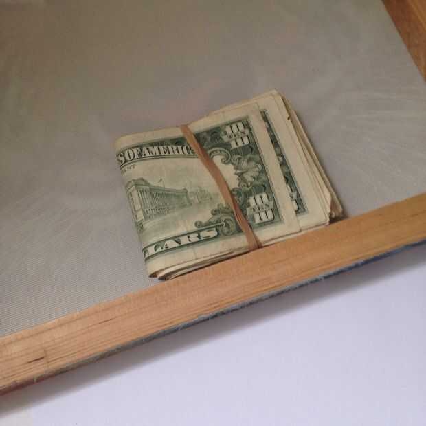 Luego coloque cuidadosamente el lienzo en la pared mientras que el balanceo del objeto en el marco. He encontrado que ayuda a poner primero la base de la lona contra la pared para que no caiga el objeto.