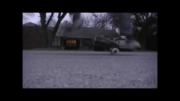 Ahora para este paso tienes que preforma de dos acciones a la vez para hacer la Junta va en el aire.  El primer paso es pop la cola (la parte posterior de la Junta) hacia abajo.  Para el segundo paso tienes que deslizar el otro pie hacia arriba para poner el tablero en el aire.