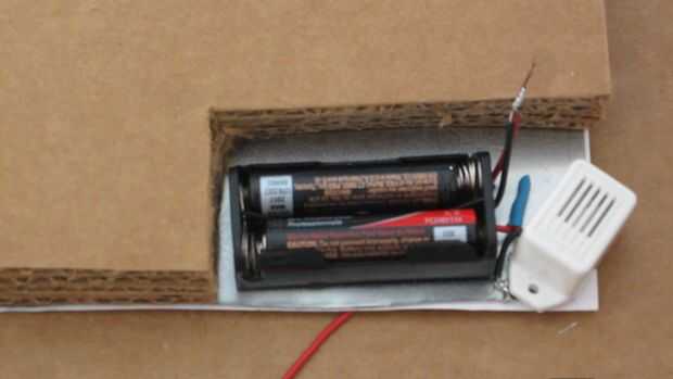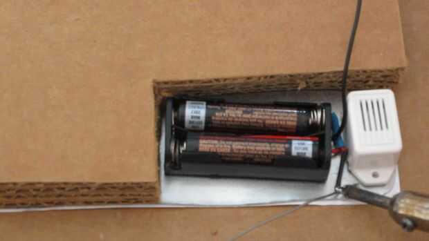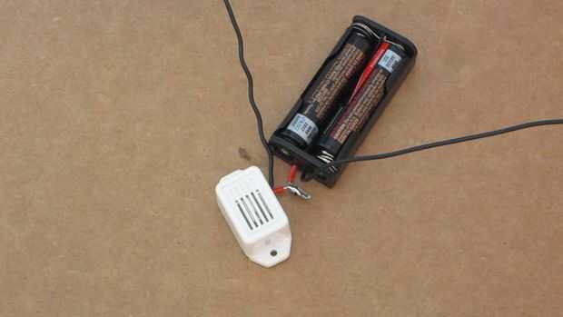 El circuito para el proyecto es realmente simple. Consiste en simplemente una batería, un zumbador y un interruptor que está formado por la pinza y la placa. Inicio soldando el cable positivo del zumbador a la positiva plomo de t él paquete de la batería. Luego soldar el cable negativo del zumbador a uno de los orificios de la placa. Por último tome el extremo libre del cable conectado a las pinzas y se alimentan a través del segundo agujero en la placa y a la soldadura al cable negativo de la batería. Puede aplicar tubos termocontraíbles o cinta aislante para ayudar a mantener todos los cables aislados.