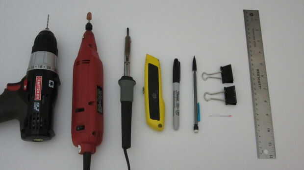 El cartón es fácil de cortar de un caja grande. Para el metal de hoja, usé una bandeja para hornear que encontré en el árbol del dólar por $1. Esto produce sobre 13 "x 9" de metal. La hoja de plástico se puede salvar de la caja de un antiguo dispositivo electrónico.