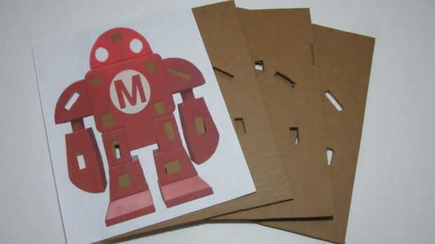 Con una aguja o empuje pierce de pin a través de la pila en cada esquina del contorno marcado. Esto marca los ángulos de los contornos de cada capa de cartón. Entonces puede quitar las pinzas de encuadernador y separar las capas. Entonces usando un cuchillo afilado, corte cuidadosamente todas las ranuras en la impresión y cada capas de cartón.