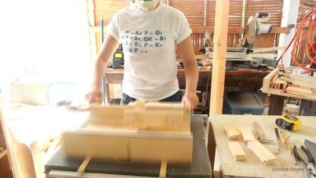 Ahora, para llenar para arriba de esta caja grande, voy a hacer un montón de cajitas, estoy utilizando la Sierra de cinta para cantear-material y el serrucho para cortar a tamaño.