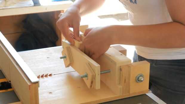 Cortar seis piezas a la vez, asegurándose de que tres de ellos del apilado offset, y entonces era simple cuestión de cortar una tonelada de juntas de la caja en la madera!