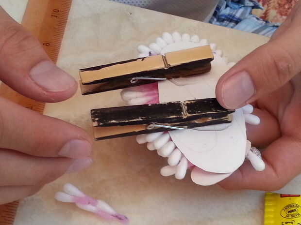 Pasta madera pinzas detrás de cuerpo de las ovejas para hacer las piernas.